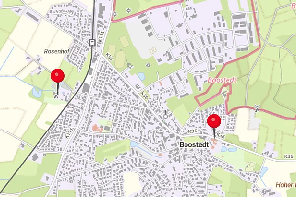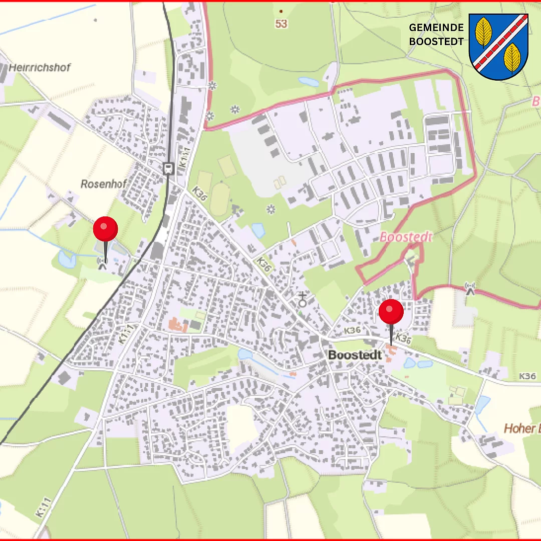 Standorte der Sirenen in der Gemeinde Boostedt