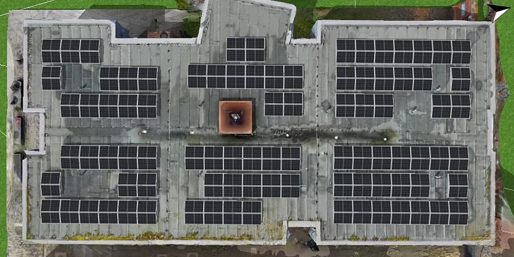 Aktuell entsteht auf dem Dach der Grund- und Gemeinschaftsschule eine PV-Anlage mit einer Anlagengröße von 80,1 kWp und 24,94 kWp.