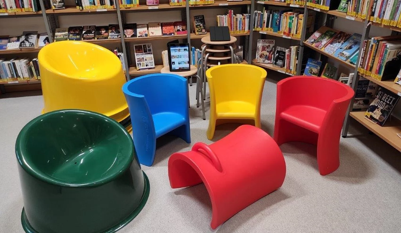 Mit Hilfe der Förderung "Vor Ort für Alle - Soforthilfeprogramm für zeitgemäße Bibliotheken in ländlichen Räumen" konnten neue Einrichtungsgegenstände und IPads angeschafft werden. Die alte nicht barrierefreie Sitzstufenanlage wurde durch neue Sitzmöbel ersetzt.